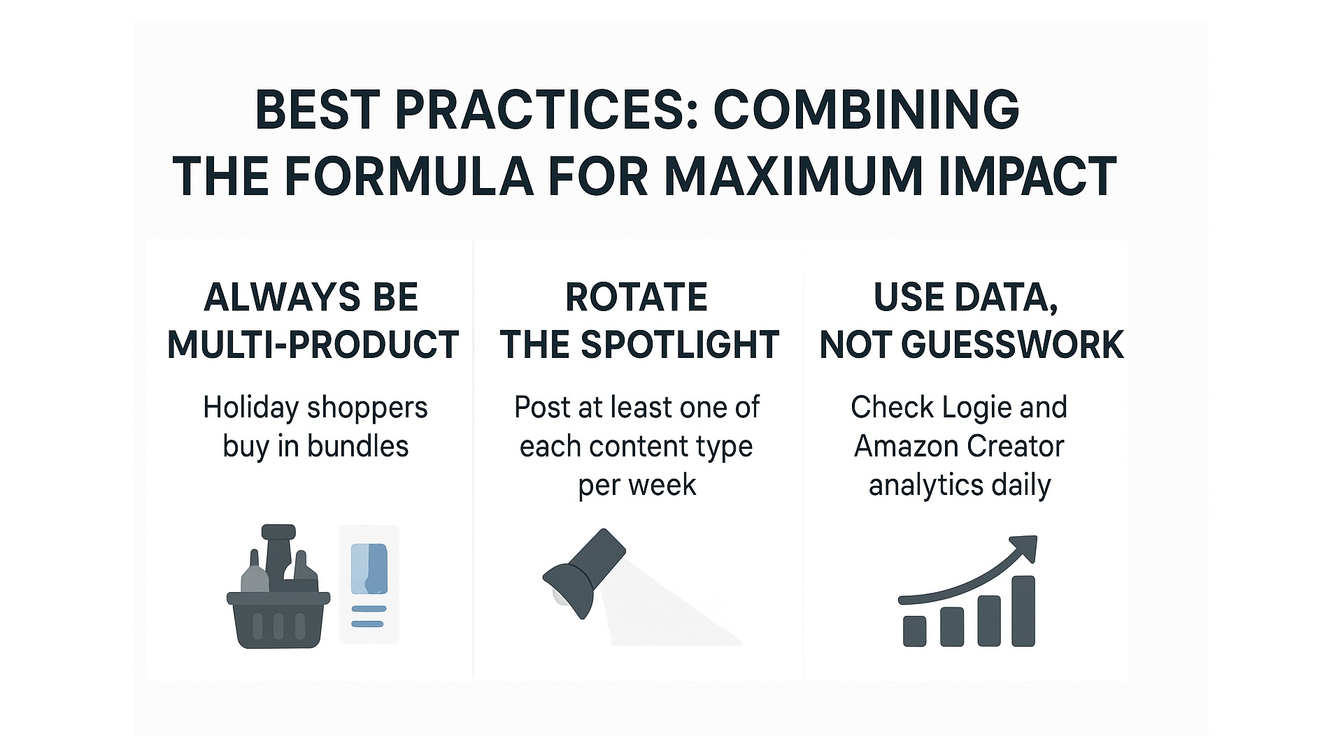 The holiday season is the ultimate arena for social commerce creators. Black Friday, Cyber Monday, and Small Business Saturday signal that game time isn’t just for brands, but also for influencers, Amazon creators, and UGC experts. Here’s your opportunity to be part of the biggest sales event of the year. With so many creators sharing deals and brands fighting for attention, not to mention the dreaded post-holiday returns, you’ll need more than just luck. That’s where the 3-content formula steps in as your Q4 secret weapon.