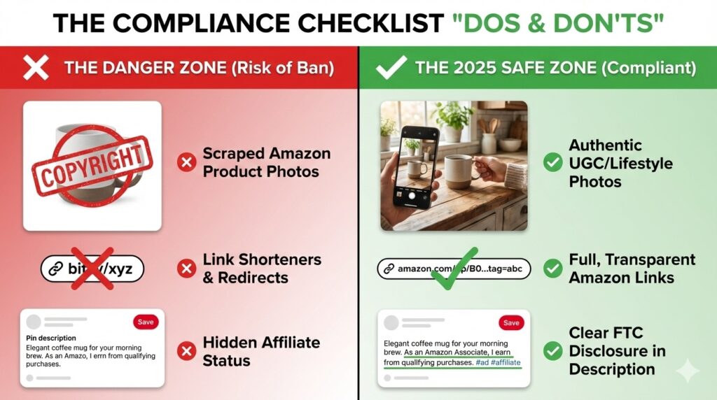 Amazon’s images are copyright-controlled. Reuploading them to Pinterest violates both copyright terms and Amazon’s Associates policies. Account bans often stem from this mistake.