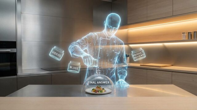 - The Ideology: Content is an ingredient. An AI “chef” (like ChatGPT, Claude, or Google SGE) scans thousands of sources to create one single “dish,” a synthesized answer.