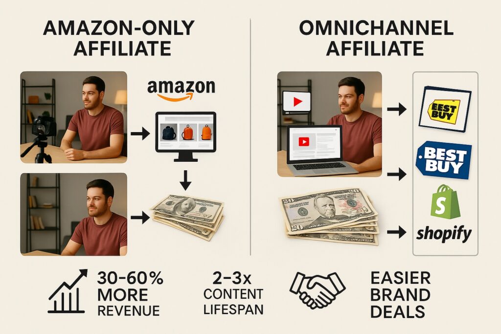 The shift from Amazon-only to omnichannel affiliate, coupled with YouTube’s built-in shopping tools and retailer partnerships like Best Buy, opens a whole new dimension of revenue potential.